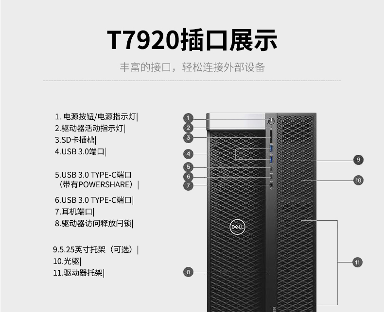 戴爾(DELL)Precision T7920圖形工作站主機 4210R*2/256G SSD+2T/R7-450/DVD/1400W/顯示器E2420H 23.8寸